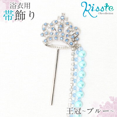帯飾り 浴衣用 <ブルー/王冠> 【 メール便対応可 宅配便対応 アクセサリー 帯アクセサリー 浴衣 ゆかた 飾り紐 きものネックレス プチプラ 】