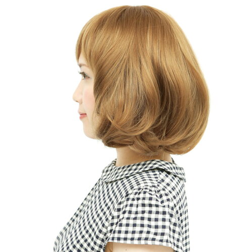 ナチュラル ゴールド ブラウン ショート ボブ 耐熱ウイッグ 前髪 wig ウェーブ 茶髪 金髪 オレンジ アニメ サイドパーツ かつら カツラ ショートヘア 短髪 カール ウェイブ コスプレ ボリューム ハロウィン コスチューム 仮装 安い 自然 文化祭 忘年会 s-cs_6b166