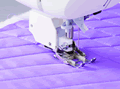◎押えに上送り歯が付いており、ミシンの送り歯と連動して生地を挟んで送るため、縫い詰まりや縫いズレを防ぎます。
