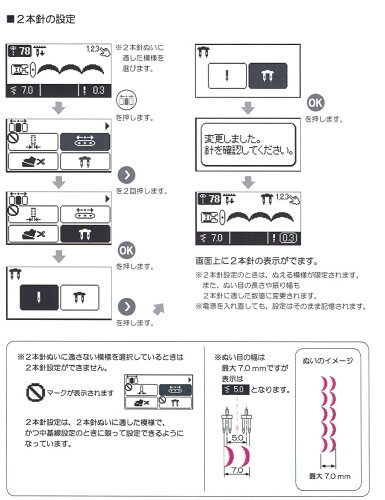 針幅:2.0ミリ / 針の太さ 11番 *メーカー純正のエクシード(Exceed)用の2本針の針幅は、2.0ミリの1種類のみになります。