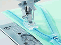 ◎ファスナーのムシを起こしながら押えの裏の溝に入れて縫うので、ムシのきわをきれいに縫えます。