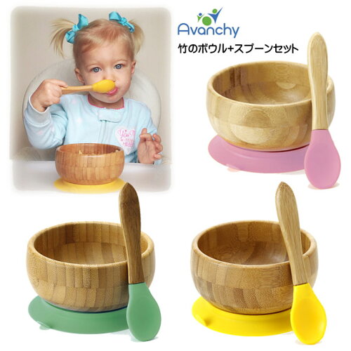 東北〜関西・送料無料 T-REX/Avanchy 竹のボウル+スプーンセット ピンク グリーン イエローBamboo Baby Suction Bowl+Spoon ベビー テーブルウェア 食器 シリコーン バンブー【離乳食プレゼント 6ヶ月頃〜】ティーレックス/アヴァンシィ