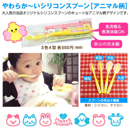 【メール便可】〈日本製〉アニマル柄シリコンスプーン【単品】ベビーからお年寄りまで人気 煮沸消毒OK 離乳食などに◎ トコちゃんベルトのおまけで人気 10本まで同梱可【ママ&ベビー/敬老の日/】 授乳/お食事/ギフト/ベビー食器)